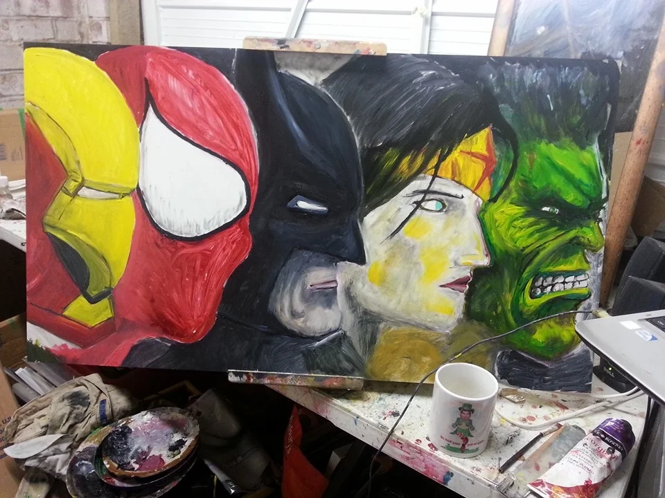 "We want paintings!!!" I hear you. I hear you. Have patience I have some below. First up is a side project, I guess you could call it a commission. Nah who am I kidding I've been working on a birthday present for my daughter's fifth birthday . ( To be honest I had meant to have it completed for Christmas, but hey life and things.) It's a superhero piece. It's almost done.