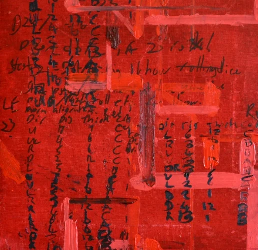 Dice generated painting No.2 (with data notation), 23cm x 23 cm, Oil on canvas.