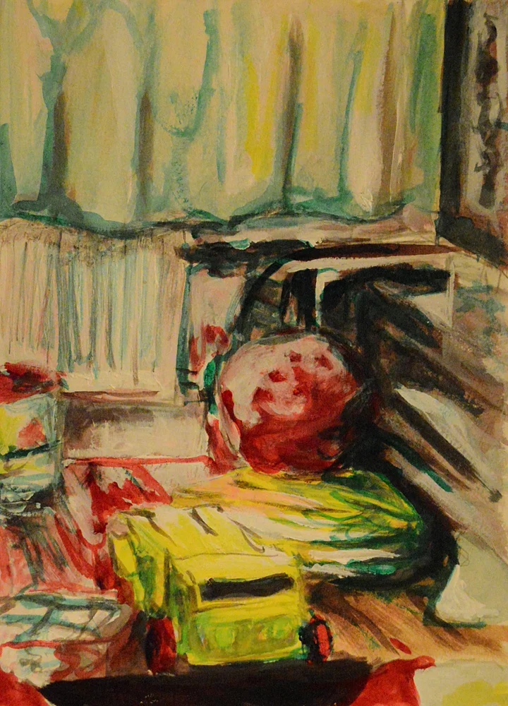 Ink and Oil on watercolour paper. 36cm x 25cm.
